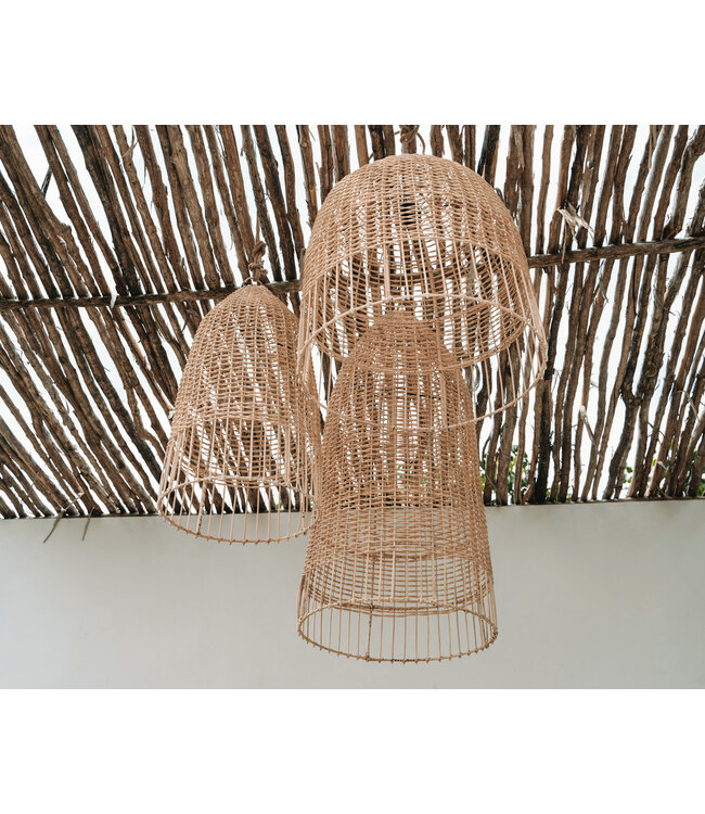 Deze kooivormige rotan hanglamp ademt de sfeer van de Italiaanse eilanden met zijn fantastische kustontwerp. Hang hem op, doe het licht aan en je wordt meteen meegevoerd naar de vibes van strandbars 's avonds. Hij kan ook als staande lamp gebruikt worden. Er zijn twee maten verkrijgbaar en vergeet ook niet onze Amalfi Pendant te bekijken - ze passen perfect bij elkaar!