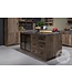 Dit keuken-eiland uit onze landelijke keukencollectie is vrijstaand te gebruiken en is aan beide zijdes anders ingedeeld. Aan de ene zijde vitrinedeurtje in combinatie met een stoer 6 ladenblok, aan de andere zijde 4 deurtjes met daarboven 4 lades.